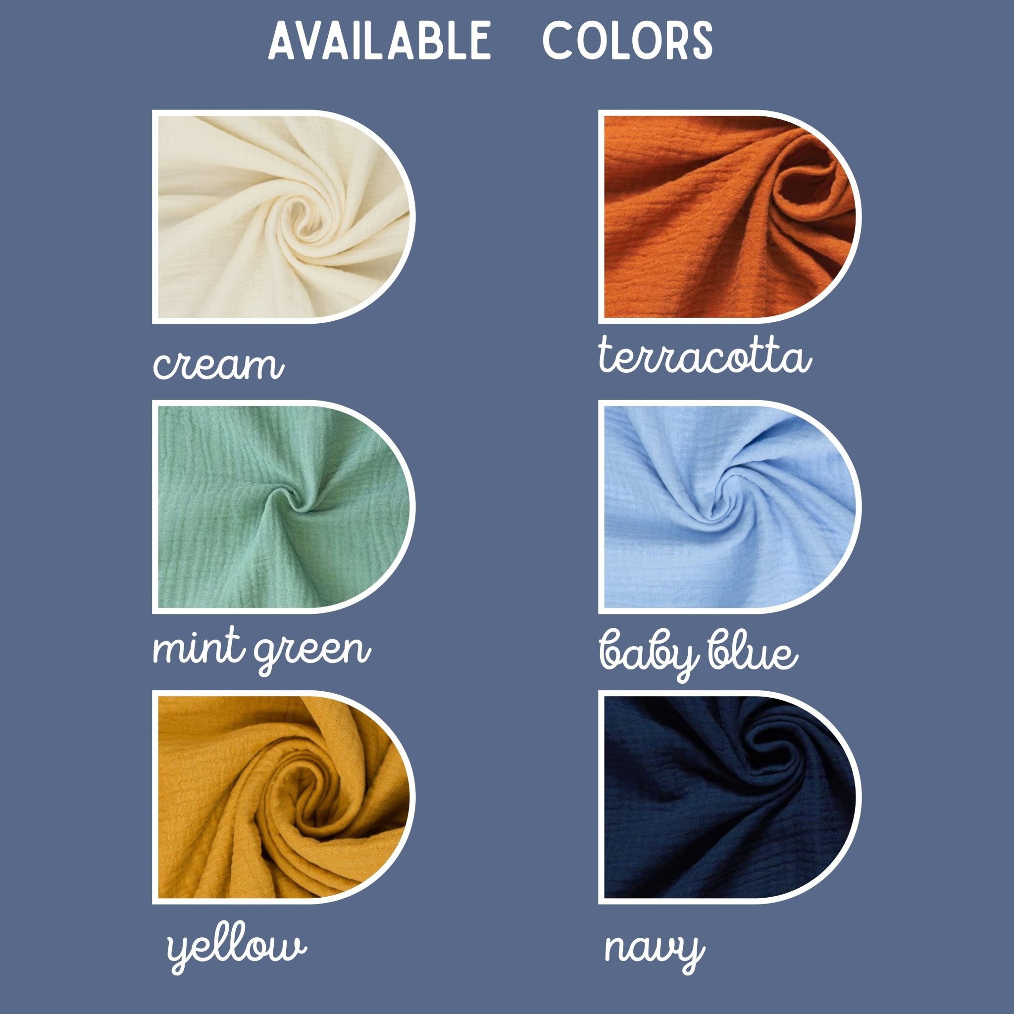 Hergestellt aus 100 % Baumwolle oder Musselin (GOTS- & OEKO-TEX-zertifiziert).